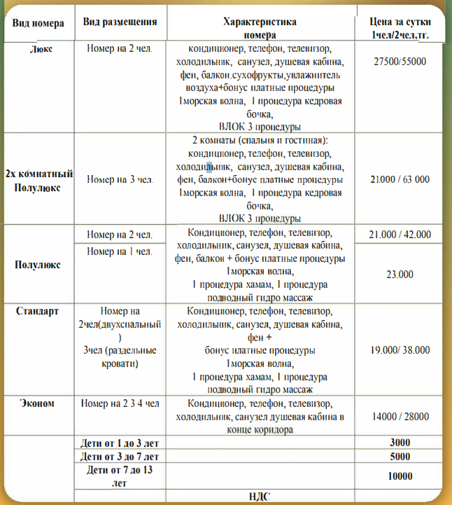 Трансфер: Отправим такси в местном (из аэропорта, вокзала). Стоимость проезда 2000 тенге с человека. Салон 8000 тг. И мы будем ждать вас бесплатно в санаторий (автовокзал).