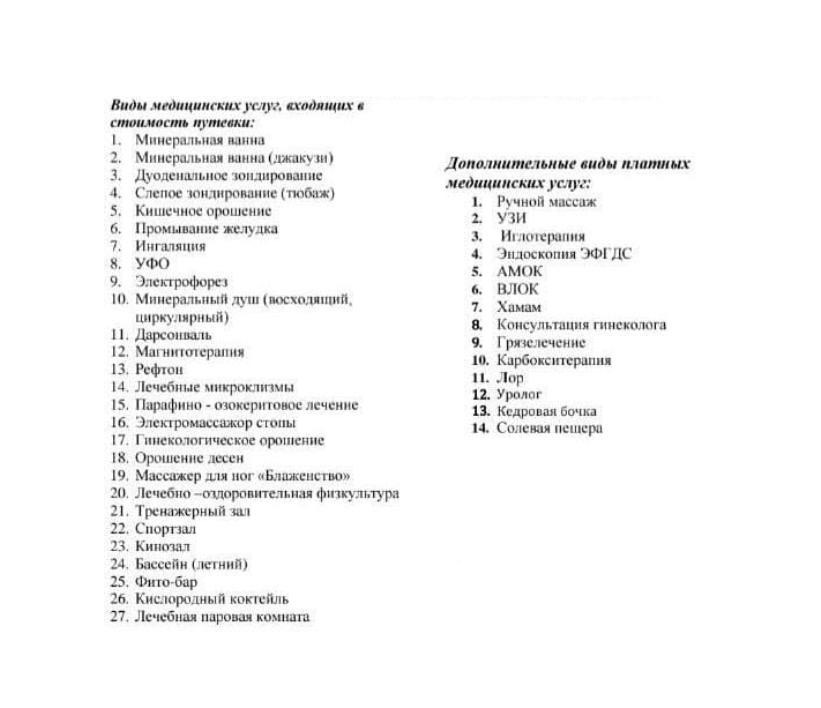 В уплаченную сумму входит более 20 процедур, консультация врача и 4-х разовое питание